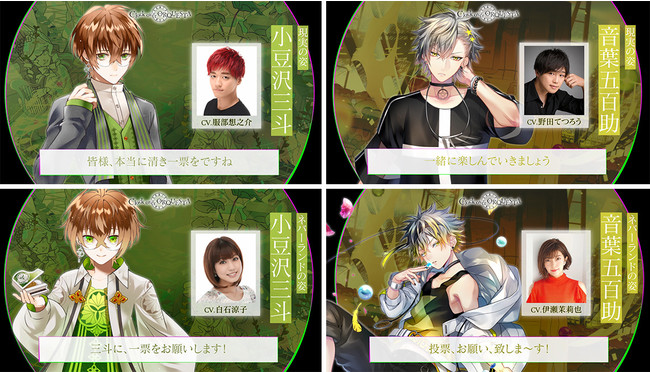 バトルの開幕にあわせて、小豆沢三斗の声を担当する服部想之介さんと白石涼子さん、音葉五百助の声を担当する野田てつろうさんと伊瀬茉莉也さんより、ボイスコメントをいただきました。