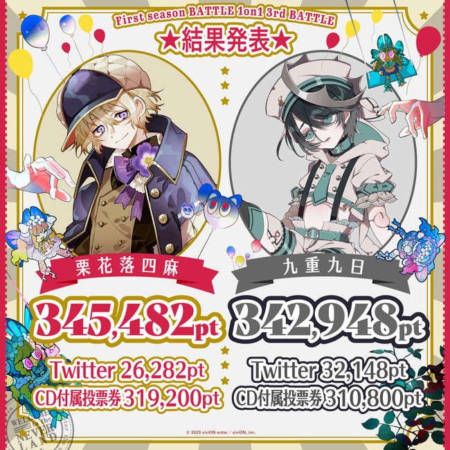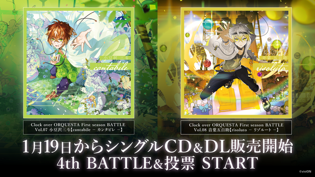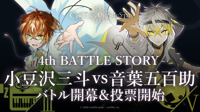 SNS連動型キャラクターソングプロジェクト『Clock over ORQUESTA(クロック・オーバー・オルケスタ)』(株式会社viviON、所在地:東京都千代田区、代表取締役:明石耕作) https://clockoverorquesta.com/ では、ユーザーの投票によって物語の展開とキャラクターバトルの勝敗が変化するバトルロイヤルを実施しています。
