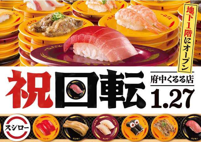 「府中くるる」にスシローがくる~~~!『スシロー府中くるる店』1月27日(木)オープン!選べる楽しさ!約80種類の100円(税込110円)寿司が盛り沢山!