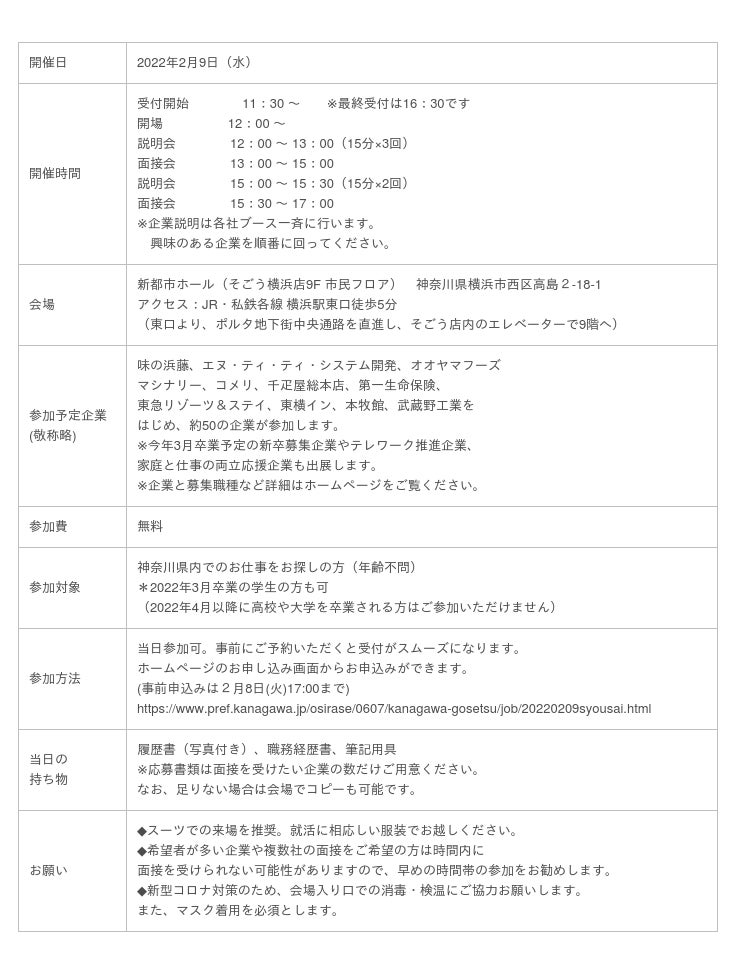 ■「かながわ合同就職面接会」開催概要