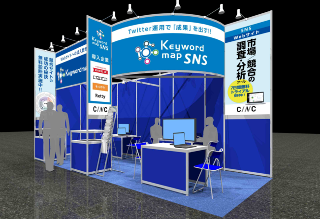 CINCはブースに出展いたします。各ブースでは、デモ環境をご用意しておりますので、無料でWebサイトやTwitterアカウントの簡易分析などをお試しいただけます。
