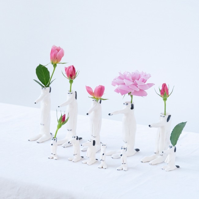 直営店「TONKACHI,6」にて先行お披露目されていた最新作も、もちろんクーポン対象!こちらの「犬くんを抱いた私の花瓶」は、愛こそ全て!がテーマ。2021年に90歳になったスウェーデンの大先輩、リサ・ラーソンへのリスペクトも感じる作品に仕上がっています。