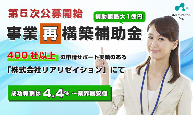 これまで400社以上の申請サポート実績のある、株式会社リアリゼイションは第5次事業再構築補助金の申請サポート受付を開始いたします。