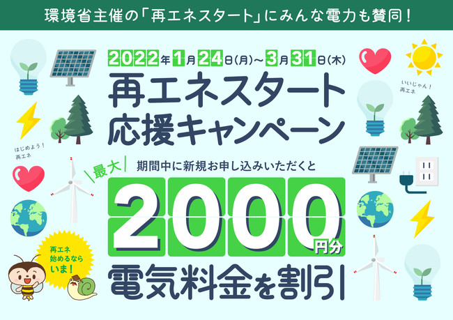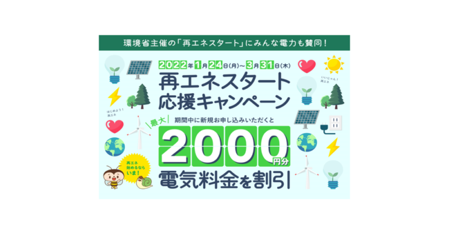 「顔の見えるライフスタイル」の実現を目指す株式会社UPDATER(所在地:東京都世田谷区、代表取締役:大石英司)は再生可能エネルギー事業「みんな電力」で環境省が主導する再エネ切り替え促進キャンペーン「再エネスタート」へ賛同するとともに、再エネスタートWEEKに合わせて個人のお客様向けに2,000円割引キャンペーンを実施いたします。