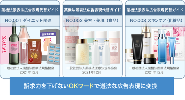 薬事法広告表現NGワード言い換え集 ダイエット商品、化粧品、美容医療、コロナ関連商品など、11カテゴリに分けて順次販売開始