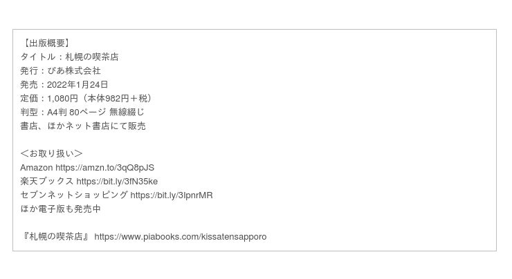 『札幌の喫茶店』 https://www.piabooks.com/kissatensapporo