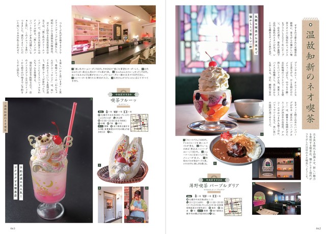 さらに、有名スイーツブランドの喫茶店や、札幌名物となりつつあるパフェを楽しめる喫茶店、ちょっと足を伸ばして小樽の喫茶店と、札幌の魅力的な喫茶店を数多く掲載しています。