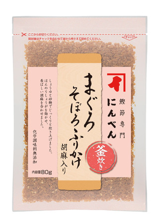 株式会社にんべん(東京都中央区、代表取締役社長 高津伊兵衛)は、「鰹節専門店の本格派ふりかけ」シリーズから、「まぐろそぼろふりかけ 胡麻入り80g」を2022年3月1日(火)より全国で新発売いたします。