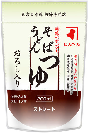 株式会社にんべん(東京都中央区、代表取締役社長 高津伊兵衛)は、好評のストレートタイプ「そばうどんつゆ」のシリーズ品として、「そばうどんつゆ おろし入り」を2022年3月1日(火)より全国で新発売いたします。