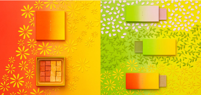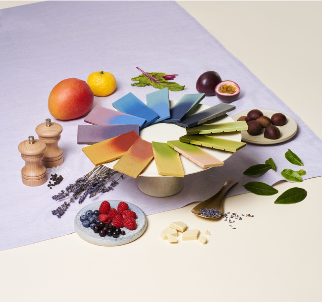 自然由来の味、色づけした日本の四季を表現したグラデーションチョコレート「イロドリチョコレート」。