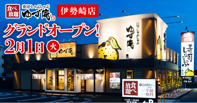 株式会社物語コーポレーション(本社:愛知県豊橋市/代表取締役社長:加藤 央之)が展開する『寿司・しゃぶしゃぶ ゆず庵』は、全国92店舗目の『寿司・しゃぶしゃぶ ゆず庵 伊勢崎店』(群馬県伊勢崎市)を、2022年2月1日(火)にグランドオープンいたします。