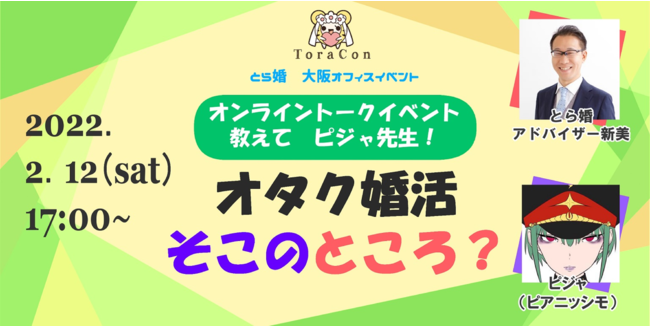 アニメや漫画・ゲームなど趣味をこよなく愛するオタク層向けに特化した結婚相談サービス「とら婚」は、成婚700名突破を記念した「オンライン婚活トークイベント」を、2022年2月12日(土)に開催することをお知らせいたします。