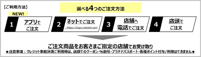 ・テイクアウト専用サイトURL : https://togo.i-skylark.com