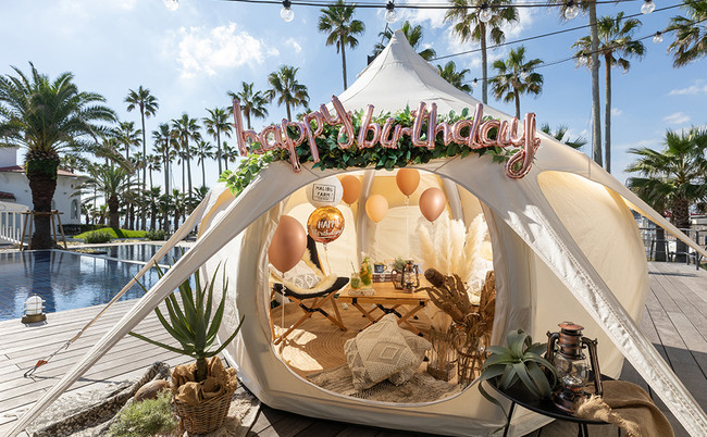 記念日やお祝いにも最適なアニバーサリーコーディネートが今シーズン新たに登場しました。コロナ禍で大人数でのお食事やパーティーを安心して気軽に行うことが難しい状況が続いていますが、ご家族や気心知れたお仲間との時間を大切にできるよう、マリブファームでは優しい潮風を感じながら安心して楽しめる、オープンエアでプライベートなお祝い空間をプロデュースいたします。カマクラテラスを彩るバルーンデコレーションをお楽しみください。