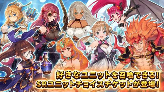 新コンテンツ実装を記念して、好きなユニットを召喚できる「SRユニットチョイスチケット」が獲得できるログインボーナス実施中!合計20体のSRユニットの中から、好きなユニットを選んで召喚できる「SRユニットチョイスチケット」が獲得できます。