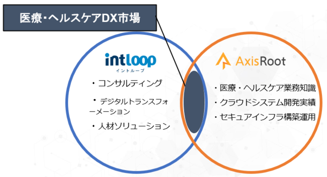 創業16年以来蓄積してきたIT領域および経営改革のコンサルティングのノウハウをもとに、中小企業から大手企業まで幅広い企業のDX推進を支援するイントループと長年システム開発・保守運用をおこない、自社の医療・ヘルスケア系サービスを開発・販売してきたアクシスルートホールディングスがそれぞれのナレッジを共有することで、医療業界のDX推進に寄与いたします。