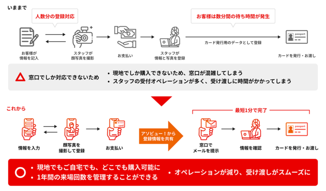 志摩スペイン村では年間で数千枚の年間パスポートを発行しております。これまでは現地での販売・発行しか行っておらず、受付オペレーションにお一人様当たり10分前後の時間が必要でございました。