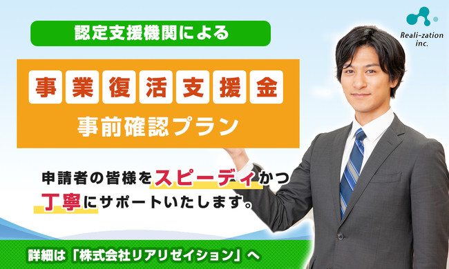 これまで400社以上の申請サポート実績のある、株式会社リアリゼイションは、事業復活支援金の申請に必要な登録確認機関(認定支援機関)による「事前確認」プランを開始しました。