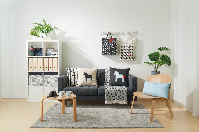 コレクションは、スウェーデンの文化をより身近に感じてほしいという想いから、イケア・ジャパンが発案し、日本で人気の高いキッチンやリビングアイテムを中心に、スウェーデンらしさを加えられる26点の商品で展開します。キッチンクロスやクッションには、「ダーラナホース」によく使われる赤がワンポイントになっていて、可愛らしいインパクトを与えます。また、北欧の豊かな自然や川からインスピレーションを受けた青や白を使って、白樺のパターンを組み合わせているデザインもあり、スウェーデンらしさあふれるコレクションです。また、手土産やちょっとしたプレゼントとしても渡せる商品となっています。コレクションは、日本のほかに、中国と韓国でも展開予定です。