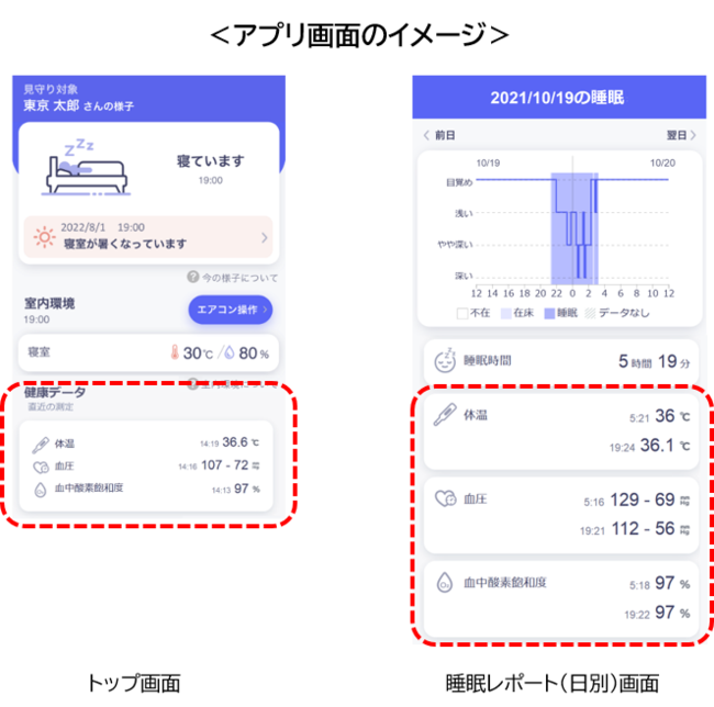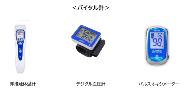 新機能「健康データ記録」は、体温計・血圧計・パルスオキシメーター(以下、「バイタル計」)*1で計測した健康データを、「ライフリズムナビ+HOME」*2のアプリ上で記録、表示するものです。