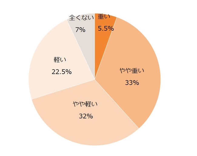 重度別に見てもやや重い・重いを合わせて38.4%と、約4割もの人が花粉に悩まされていることがわかります。
