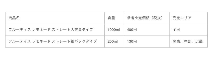 この度、21年9月に発売して好評な「フルーティス レモネード」のそのまま飲めるストレート大容量タイプとさまざまなシーンで手軽に楽しんでいただける紙パックの飲み切りタイプを新たに追加することで、さらなる市場の活性化を図ってまいります。