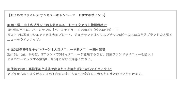 【テイクアウト】おうちでファミレス サンキューキャンペーン第1弾 概要