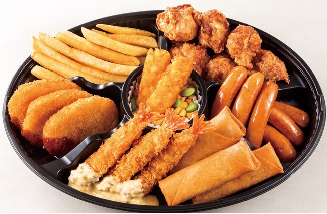 ・春巻き・野菜コロッケ・海老フライ・ポテトフライ・唐揚げ・ソーセージ・ほうれん草・コーン&枝豆