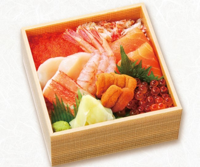 ずわいがに棒肉、紅ずわいがにほぐし身、うに、いくら、甘えび、ほたて、サーモン、とびっこ