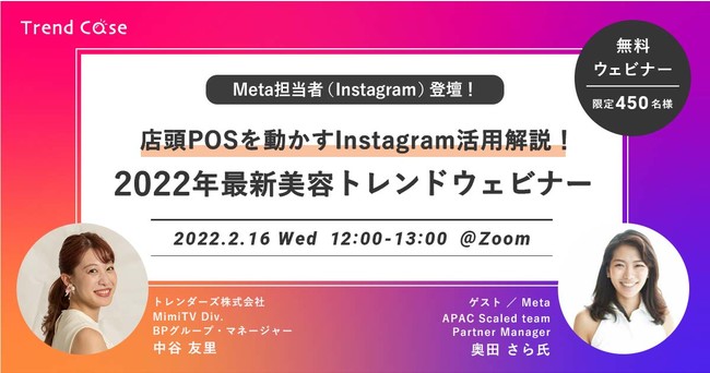 Meta担当者(Instagram)登壇の無料ウェビナー「店頭POSを動かすInstagram活用解説! 2022年最新美容トレンドウェビナー」2022年2月16日(水)開催