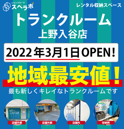 【3月1日(火)オープン】見学から契約、解約まで完全非接触・非対面!更にお申し込みからご利用まで最短3時間!都内にて絶賛運営中のトランクルーム【スペラボ】が台東区上野入谷に出店!!