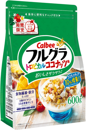 カルビー株式会社(本社:東京都千代田区、代表取締役社長:伊藤 秀二 以下、カルビー)は、シリアルブランド売上げNo.1(※1)の「フルグラ(R)」から、春夏の定番商品『フルグラ(R) トロピカルココナッツ味』を2022年2月14日(月)より全国で期間限定発売(2022年8月下旬終売予定)します。※1 インテージSRI+データ:シリアル2021年1月1日~2021年12月31日 累計販売金額