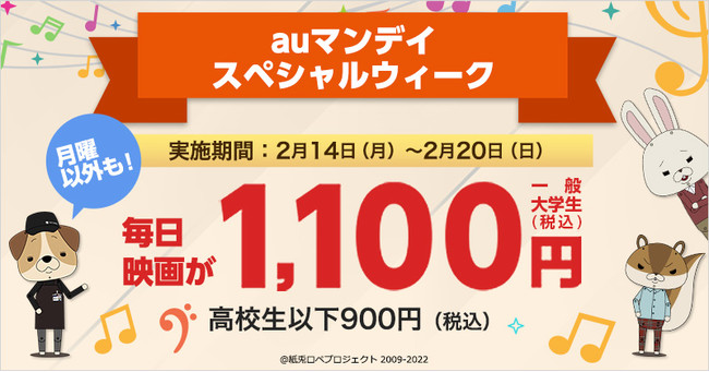 au以外の方も使える!KDDI×TOHOシネマズ 大好評を受け緊急開催決定!「auマンデイ スペシャルウイーク」2月14日からの1週間、映画が毎日1,100円