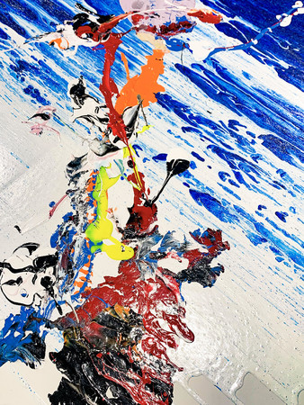 特定の技法・技術やメディウムにとらわれず、平面、立体、映像、アートプロジェクトまで、様々なかたちで展開される藤元の表現は、環境・社会、重力といった、人の力では制御出来ないエネルギーによって起こる現象をモチーフとしています。今回の個展「Diastrophism-地殻変動-」で藤元は、昨今の地震災害や火山噴火のような事象同様、揺るぎないと信じていた我々の価値基盤の揺らぎを物理現象に置き換え作品化します。絵具の流動と風の力を用いて描く極細な線を組み合わせた「Land Slide」シリーズ、絵具のドロッピングをコラージュして重力・時間の不可逆性を無視する「Replacement」シリーズを中心に、時代に反応し作風がアップデートし続ける藤元の最新を知れる平面作品をご紹介します、ぜひご覧ください。