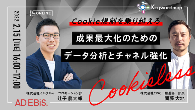 株式会社CINC(シンク、以下CINC)は、2022年2月15日(火)に株式会社イルグルムとオンラインセミナー『Cookie規制を乗り越えろ 成果最大化のための「データ分析」と「チャネル強化」』を開催いたします。