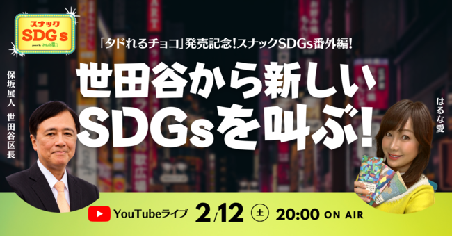 「タドれるチョコ」1日アンバサダー・はるな愛さんに加え、当社が所在する世田谷区の保坂展人区長をお迎えして、TBSラジオで放送中の「スナックSDGs」をYouTubeにて臨時開店します。