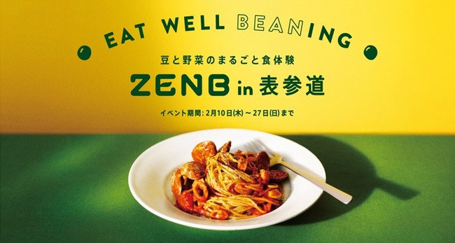 株式会社ZENB JAPAN(ゼンブ ジャパン)(愛知県半田市、以下 ZENB)は、2月10日の“世界マメの日”に合わせて、表参道エリアの外食店12店と共同で豆や野菜をメインにしたメニューを開発し、体験提供するプロジェクト「ZENB in表参道 EAT WELL”BEAN”ING(イートウェルビーイング)」を2022年2月10日~27日の期間、実施します。