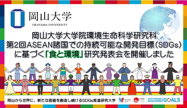 国立大学法人岡山大学(本部:岡山市北区、学長:槇野博史)の大学院環境生命科学研究科は、2022年1月25日に「The Second International Colloquium on “Food and Environment” Research Based on Sustainable Development Goals (SDGs) in ASEAN Countries(第2回ASEAN諸国での持続可能な開発目標(SDGs)に基づく「食と環境」研究発表会)」を開催しました。