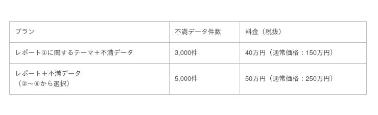 内 容:ideAI(アイデアイ)にて抽出した、生活者の希少で新奇性のある不満を割引価格でお届け。
