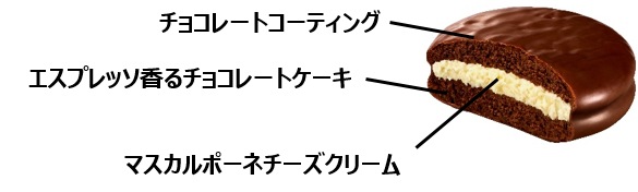 エスプレッソコーヒーを練りこんだ生地に、マスカルポーネチーズクリームをサンドし、コクのある本格的な味わいを楽しめます。