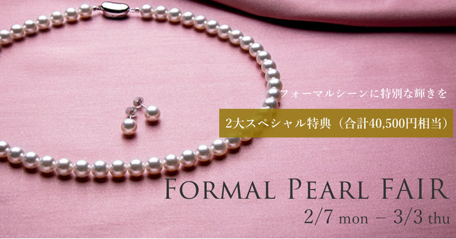 パールジュエリーECサイト「Pearl for Life by 真珠の卸屋さん」。2月7日(月)~3月3日(木)14:59までの期間、対象のパールネックレスをご購入の方にもれなく(先着)、合計40,500円相当のあこや真珠ジュエリーとパール専用ケースを進呈する「Formal Pearl FAIR(フォーマルパールフェア)」を開催中です。春の卒入園・卒入学式シーズン目前!セレモニーにふさわしい高品質パールネックレスをぜひご準備ください。https://www.wsp.ne.jp/