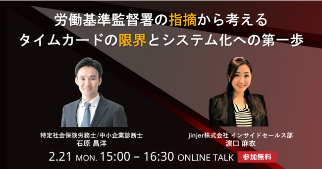 バックオフィス向けクラウドサービス「ジンジャー」を提供するjinjer株式会社(本社:東京都新宿区、代表取締役:加藤 賢)は、「社会保険労務士が事例を元に解説する労働基準監督署調査のチェックポイントと対応方法に関するセミナー」を、2022年2月21日(月)に開催することをお知らせいたします。