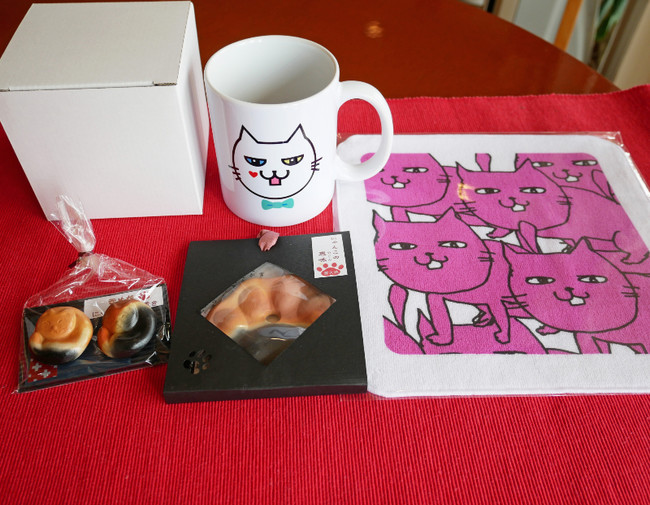 【猫の食卓セット】猫のマグカップ、にゃんこの箸置き、にゃんこの恵味、猫のミニタオル