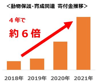 ■子猫のミルクボランティアや盲導犬育成のための事業など動物保護・育成関連の寄付金が増加