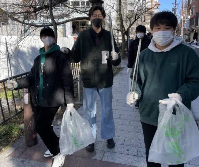 1.「京都クリーンアップ大作戦!2022」では地域の方々へ感謝を込めて、旅行 専門学生が学校近くでボランティア清掃を行いました。
