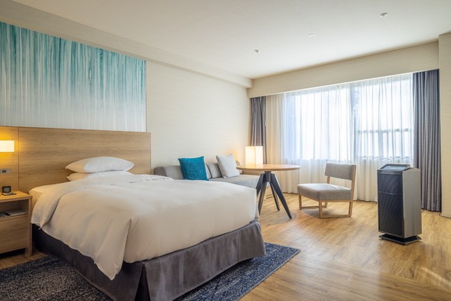 今回発売する「Pure wellness roomツイン/キング」は、米・ニューヨーク州に拠点を置くPure Solutions LLC(ピュア ソリューションズ)が開発した高品質な空気環境を実現する特別な客室です。一般的な空気清浄機は、浮遊粒子を捕集するものの、ドアノブ・スイッチ・テーブルなど部屋中の様々な場所に潜む付着粒子を捕集することはできません。今回導入した「Pure wellness room」プログラムでは、こうした課題を克服すべく、空気清浄機だけでは除去しきれない付着粒子にもアプローチ※。空気中のみならず、床、壁、布などの表面に付着するウイルス、カビ、花粉、PM2.5を含んだ様々な微粒子を除去し、衛生的かつ安心してお過ごしいただける環境に整えます。どこに触れるか分からない小さなお子様連れのご家族にも安心してお過ごしいただける客室で、快適なホテルステイをお楽しみいただけます。