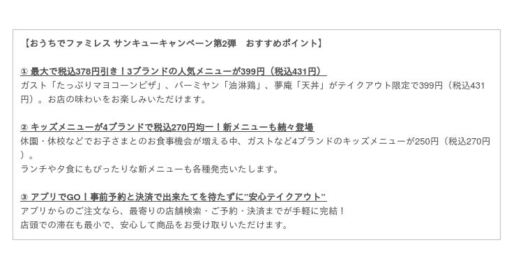 【テイクアウト】おうちでファミレス サンキューキャンペーン第2弾 概要