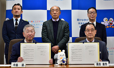 当日は、文教大学の中島滋学長および埼玉県教育委員会の高田直芳教育長出席のもと、協定書への署名などが行われました。