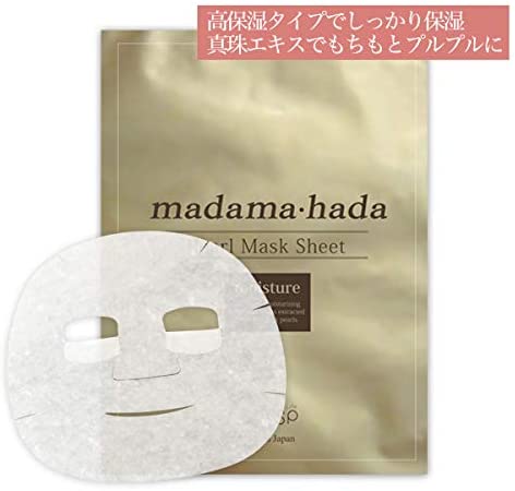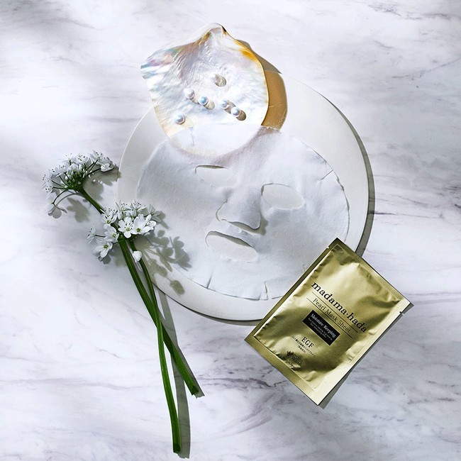 真珠エキスと海洋由来の美容成分に加え、上皮細胞を再生させる因子として知られるEGFをたっぷり浸透させた、高保湿タイプのシートマスクです。顔全体に貼るだけ10分で、ご自宅で手軽に高級エステ後のようなスキンケアをお楽しみください。“真珠のように輝く発光肌”に導くmadama・hadaスペシャルケアシリーズのベストセラーとして海外でブレイクし累計260万枚の販売実績を誇ります。