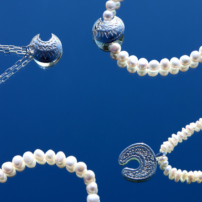 シルバープレートは一つひとつ手作業でスタンプワークを施していて、また純度の高い950SLVを使用することで白度が増し、モダンで上品な印象に。
